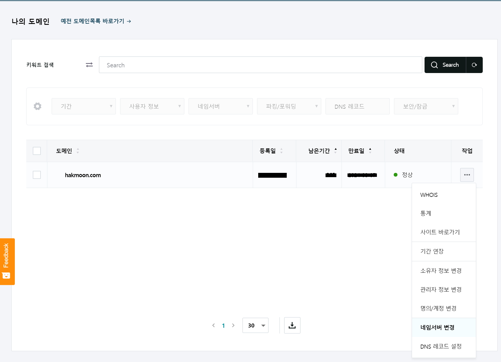 아래 사진과 같이 작업탭에서 네임서버 변경을 선택합시다.