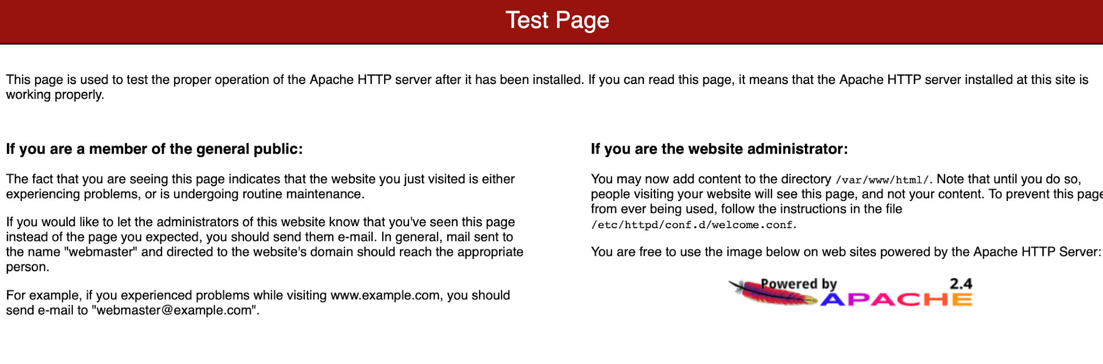 기본적으로 Linux Apache 설치시 , 기본 DocumentRoot 경로는 /var/www/html 이며, 사이트 정상 출력 확인 방법은